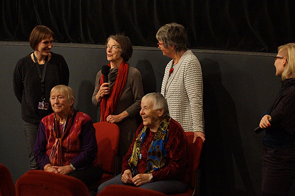 Anneliese, Ruth, Esther, Ulla, Regisseurin Alina Cyranek und Festivalkoordinatorin Kathrin